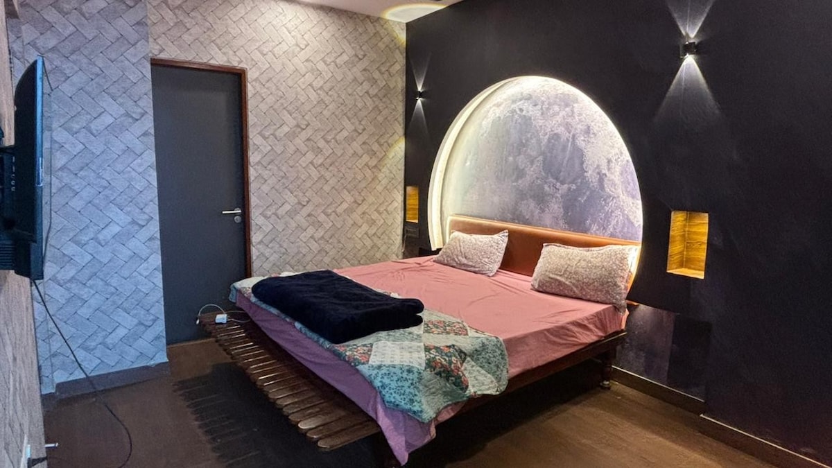 Have fun with the whole family at this stylish place. This place that offers everything you'll need for a luxurious stay. It has all the amenities and full security & privacy. Relax & Enjoy time with your loved at Ultra Luxury Studio. Experience the lavishness of a 5- star property with 5-star Amenities. This place is private and independent not shared with anyone. Enjoy outdoor dining in beautiful balcony with a beautiful city view. Very private with no noisy Neighbours.