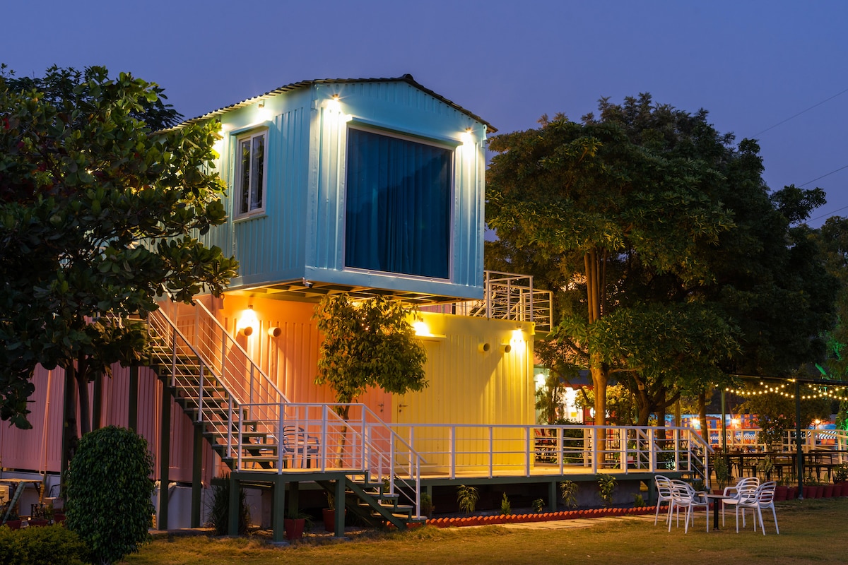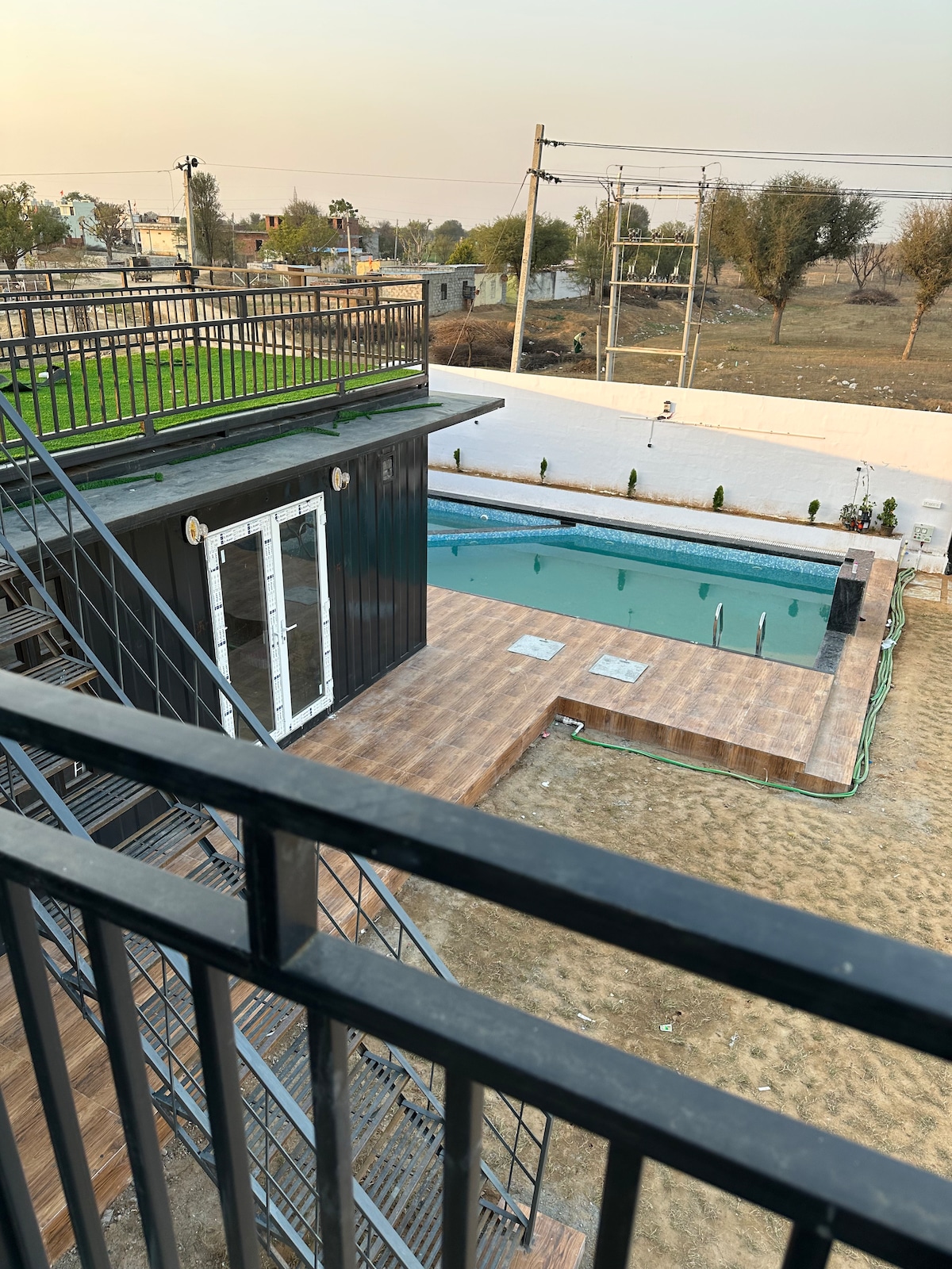 ◆Located in the serene forests of Dhouj, perfect for a peaceful escape ◆Spread across 3 acres with lush greenery & open spaces ◆Features a charming rustic mudhouse & a unique container stay ◆Large swimming pool with a stylish gazebo for lounging ◆Sit-out area to relax & take in the natural surroundings ◆Machan setup in the garden – ideal for nature views & photoshoots ◆Top-notch 5-star hospitality, following “Atithi Devo Bhava”