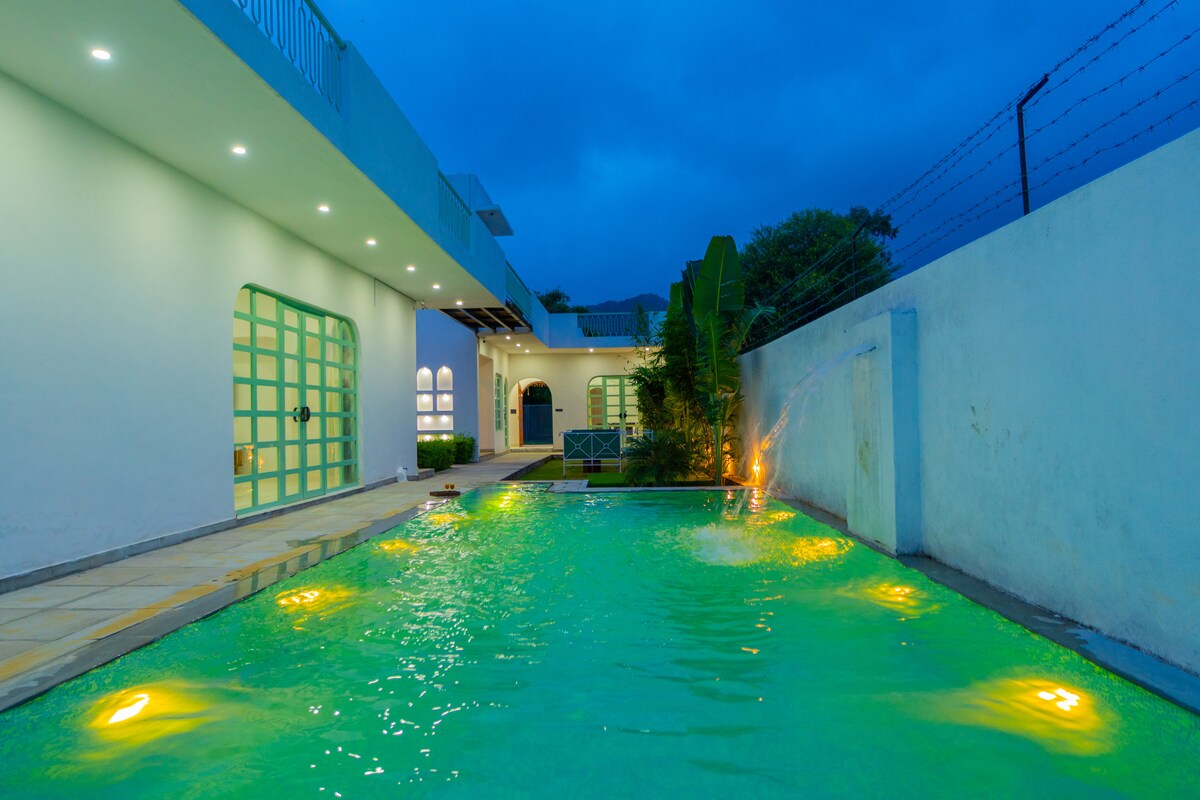 🌊 Swimming Pool: Enjoy a refreshing dip in your private swimming pool. 🌿 Outdoor Garden & Pergola: Step into the villa’s lush garden area, ideal for morning walks, yoga, or an evening cup of tea under the open sky. A charming pergola sits nestled in the garden – perfect for lounging, reading, or romantic dinners. 🛋️ Modern Amenities Include: Bluetooth Speaker – Enjoy your favorite tunes whether inside the villa or relaxing by the pool. Mini fridge, crockery, hot kettle.