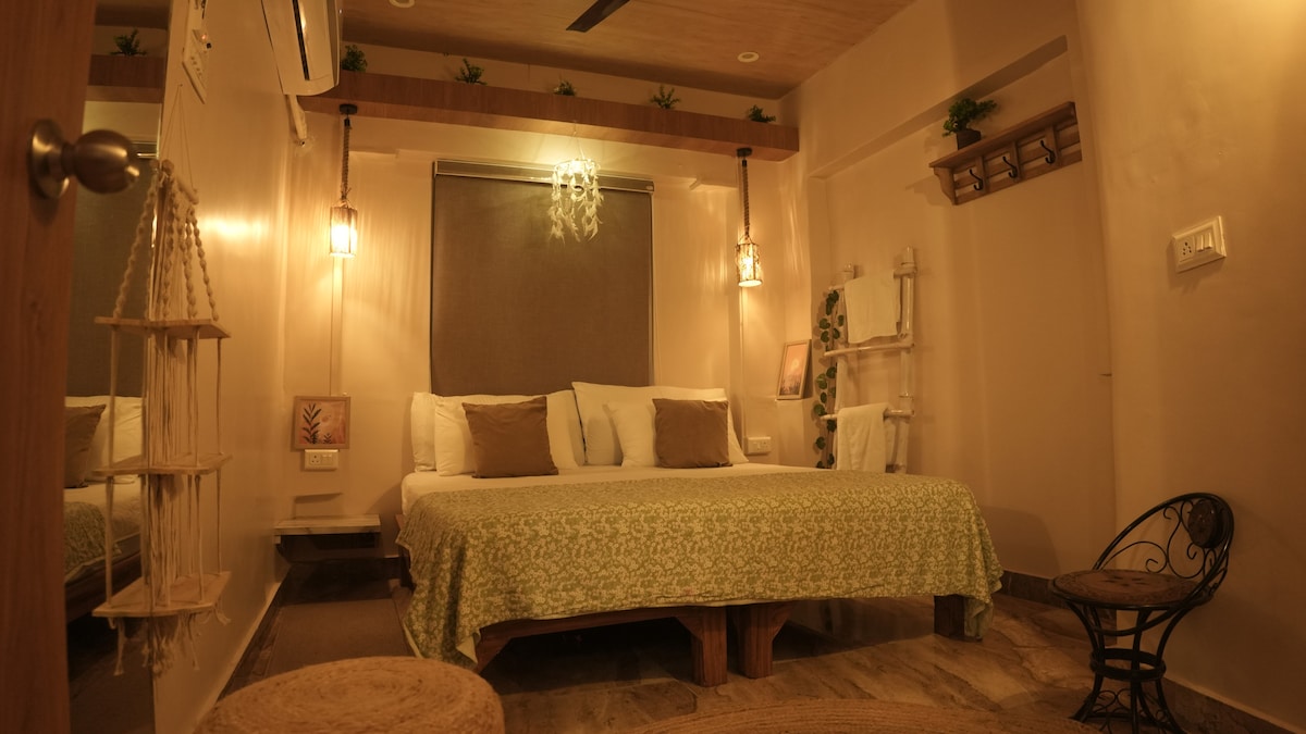 Namaste! Welcome to Your Home away From Home in Varanasi! Luxury private space with a rooftop garden. Perfectly located under 20 minutes from Varanasi's iconic sites (Shri Kashi Vishwanath temple & Ghats), this space offers a king-size bed, a fully equipped kitchen, Wi-Fi, a large android TV and a spacious terrace for relaxation or yoga. Whether you’re here to explore, meditate, or simply relax, we hope you’ll feel like home and leave with a sense of rejuvenation.