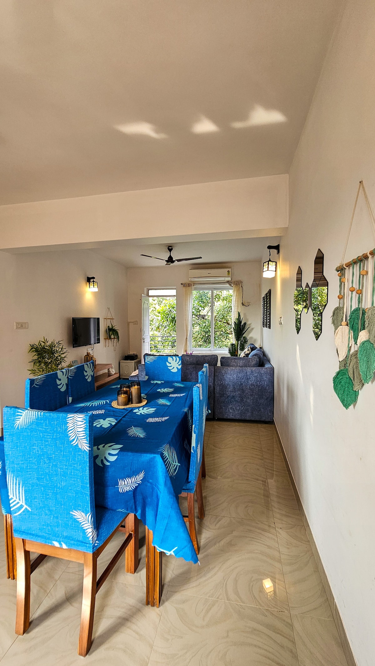 Bhoomi : Cozy 1BHK Home in Patnem, Goa with Stunning Views and Shared Pool With its stunning views of the lush landscapes and the shared pool, this apartment offers the perfect blend of tranquility and convenience. Amenities: - 1 Bedroom with double bed - Fully equipped kitchen - Living area with comfortable seating - 2 Balconies with stunning views - Shared pool - Boho-inspired decor - Complimentary Wi-Fi - Open Parking available