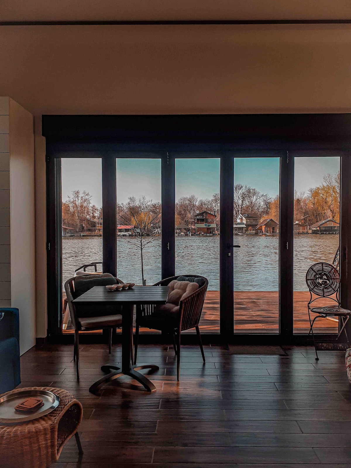Beach House Belgrade villa on the water is a modern designed, open space residence, tucked in the flourishing green oasis of Ada Ciganlija's park. Our property prevails in simplicity. It possess a large living area with big movable windows , in front and on the sides, which provides the magical view on Sava river even when you are relaxing inside. Our location - behind the Golf club Belgrade in Ada, 15 min drive from the city center, will not leave you out from the city's vibrant life.