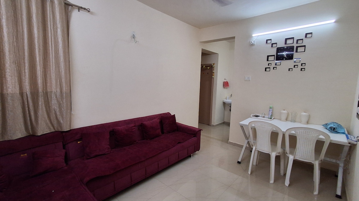Well-furnished spacious apartment with AC bedrooms with Dresser/Cupboard, King Size bed with attached bathroom. Beautiful breezy and nice garden view balcony, free Wi-Fi, feels likes your own home. Mosquito & dust free apartment. This place is great for NRI families. Peaceful, comfortable & safe. Kitchen with all appliances & utensils. Grocery & Vegetable market within walking distance. Monthly & weekly discounted in rates. Flexible check in time.