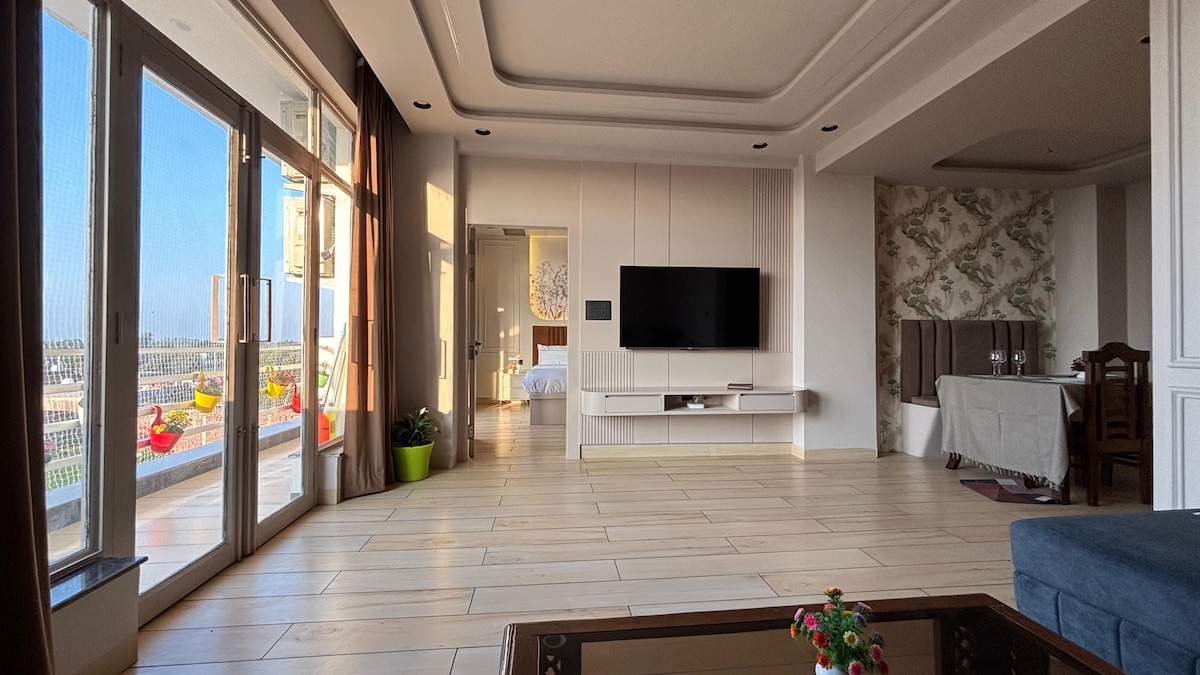 **Currrently swimming pool is closed** Welcome to our serene apartment nestled in a premier society, perfect for up to 4 guests. Enjoy luxurious amenities like a swimming pool, gym, and serene temple. Located near the Taj Mahal yet peacefully removed from the city's hustle, our high-floor unit offers panoramic green field views, ensuring privacy, excellent air circulation, and abundant natural light for a tranquil ambiance.