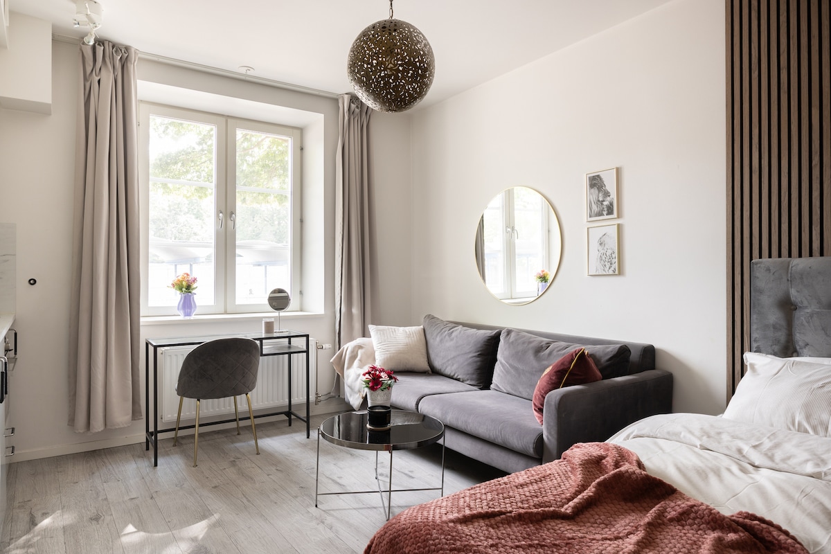 宽敞舒适的公寓,配有标准双人床,距离市区10分钟