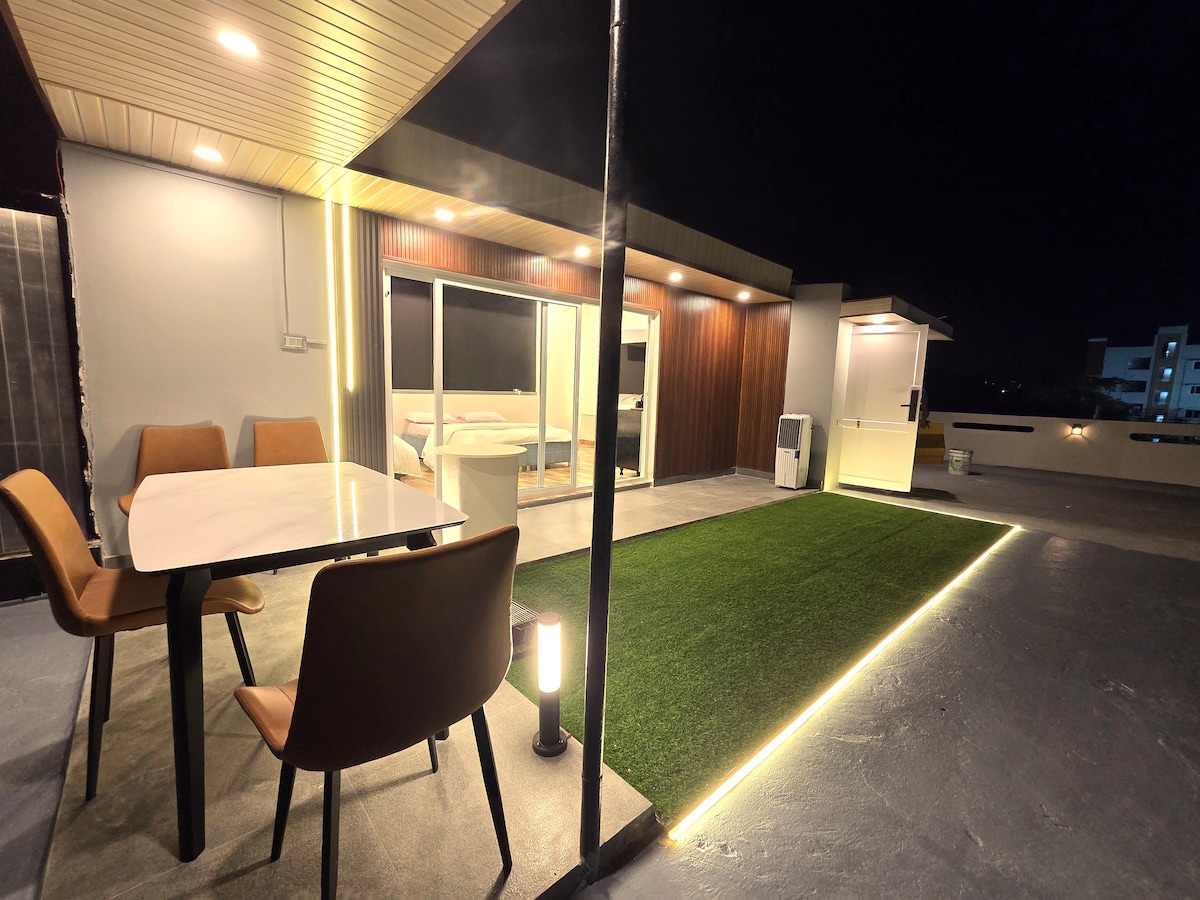 A luxurious coastal escape just steps away from pristine sandy shores. Nestled in the city centre this homestay offers an idyllic retreat for Families, Working Professionals, Corporate meetings & Reunions and Weekend Getaways. Enjoy a fully equipped modular kitchen, cozy living area, home theatre and an open area of the ocean view! Along with our unparalleled hospitality this is your perfect home away from home.