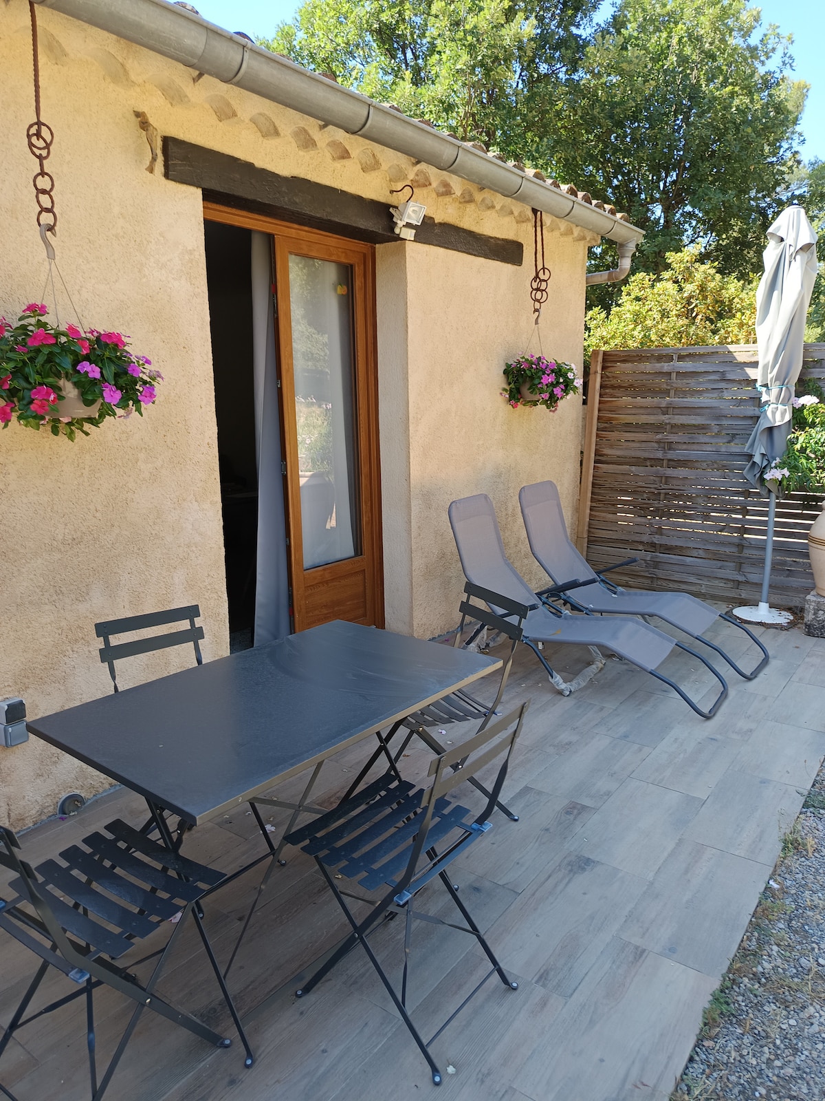 Bagnols en Forêt, dans un domaine fermé, calme, studio climatisé 25 m², (dans villa 2019-entrée indépendante) tout confort, 2 personnes -ni enfant, ni bébé-. Il comprend 1 pièce de vie avec kitchinette équipée, coin salon avec canapé lit, télévision, rangement. 1 chambre 1 lit (160 x 200) et son espace douche, placard, toilette séparée. A disposition parking, piscine (8x4) partagée avec le propriétaire, terrasse avec table, chaises, plancha, transats, parasol, douche. Non fumeur, pas d’animaux.