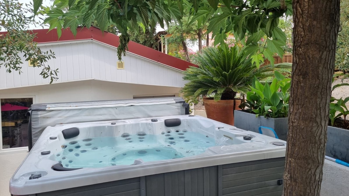 DANS LE DOMAINE PRIVE "LE MAS DE LA COLLE" MAISONNETTE POUR 2 PERS ÉQUIPÉE D’UN JACUZZI (EN SERVICE DE MAI A SEPTEMBRE), SITUÉE AU COEUR DE L'ESTEREL, SANS VIS A VIS ET AU CALME ABSOLU. ________________ → Wifi → Parking privatif → Climatisation pour votre confort → 1 lit Queen size (160/200) → Cuisine équipée → Lave-linge → Machine Nespresso pour les amateurs de café. → Barbecue électrique → Plages et Golfs à 10min en voiture → Proche commodités à 5min en voiture