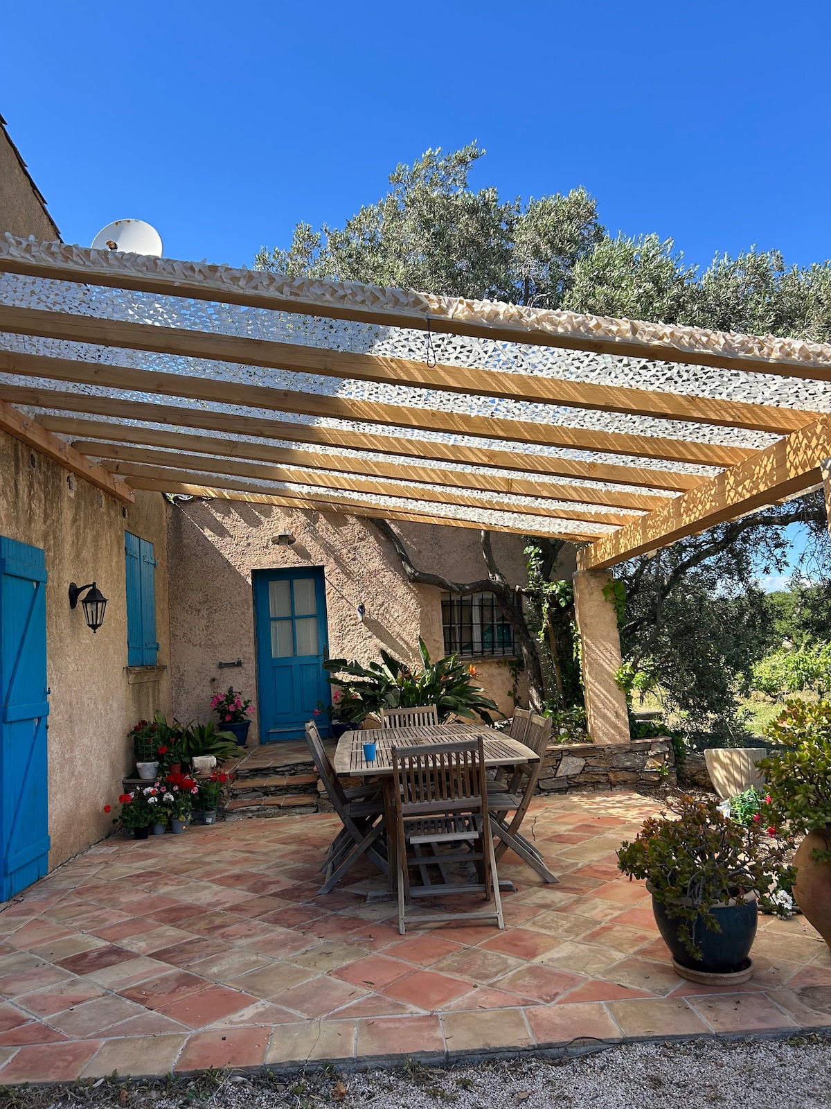 Vous recherchez un logement au calme sur la presqu'île de Saint-Tropez ? Notre maison est l'endroit idéal. Elle est située à 15 minutes du centre de Saint-Tropez et de Pampelonne, à 10min des plages de Gigaro et à un jet de pierre de Gassin. La maison est toute neuve et fait partie d'un petit domaine viticole. Elle a son propre jardin et partage la piscine (4*15m) avec la maison principale. Pour les golfeurs, 3 trous et un bunker permettront d'entraîner votre swing.