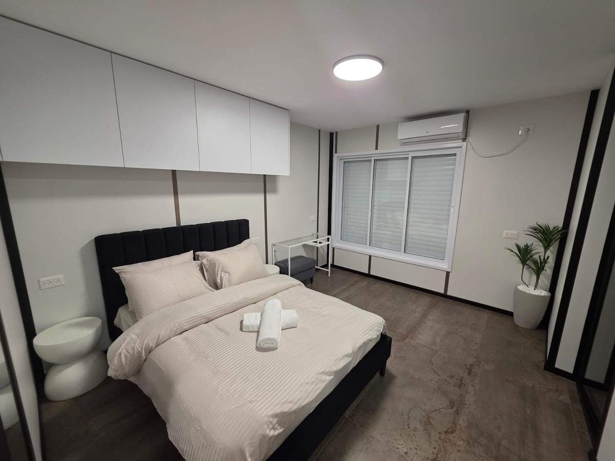 Bring the whole family to this great place with lots of room for fun. New building with included free parking.Stunning sea views, a balcony, and just steps from the beach — it’s the perfect escape for couples, families, or small groups. Enjoy modern amenities, a fully equipped kitchen, AC, and Wi-Fi The apartment also has a ‘Mamad’ (safe room), a standard security feature in Israeli homes for your peace of mind.