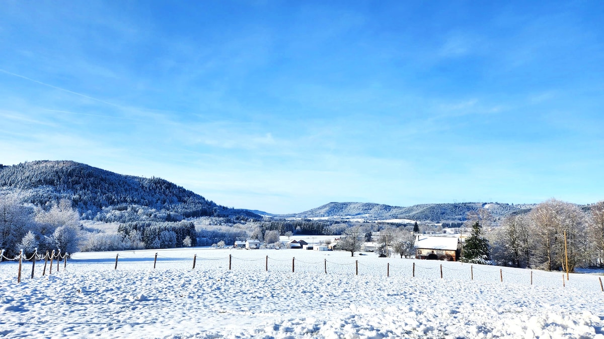 Just enjoy and relax! Discover the beautiful starry nights in Summer or go sledging and skiing in Winter! Surprising view of the Vosges with the mountain on one side and the forest on the other. At the top of the mountain, in the middle of the fields, our house located directly on the hiking trails, 5 minutes from Lake Gérardmer and 15 minutes from the ski slopes. A subtle blend of contemporary and old to make you feel at home!