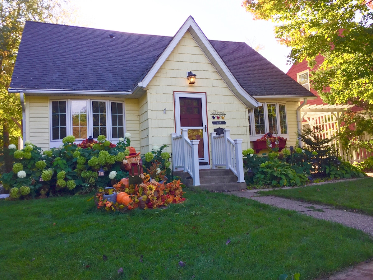 An 1885 cottage offering you a 600 sf suite, 15 min to MSP/colleges; 5 to downtown/hospitals. 3 garden level rooms include wine on arrival, fridge stocked for continental bkfst, microwave, toaster, coffee/tea, gas fireplace, 55" Smart TV, private bath w/Kohler soaking tub/shower, heated towel rack, WIFI. License #20180000308. Guests say it is a perfect combination: the privacy of a small apartment with the home-like feel of being the house guest of friends. We can't wait to welcome you!