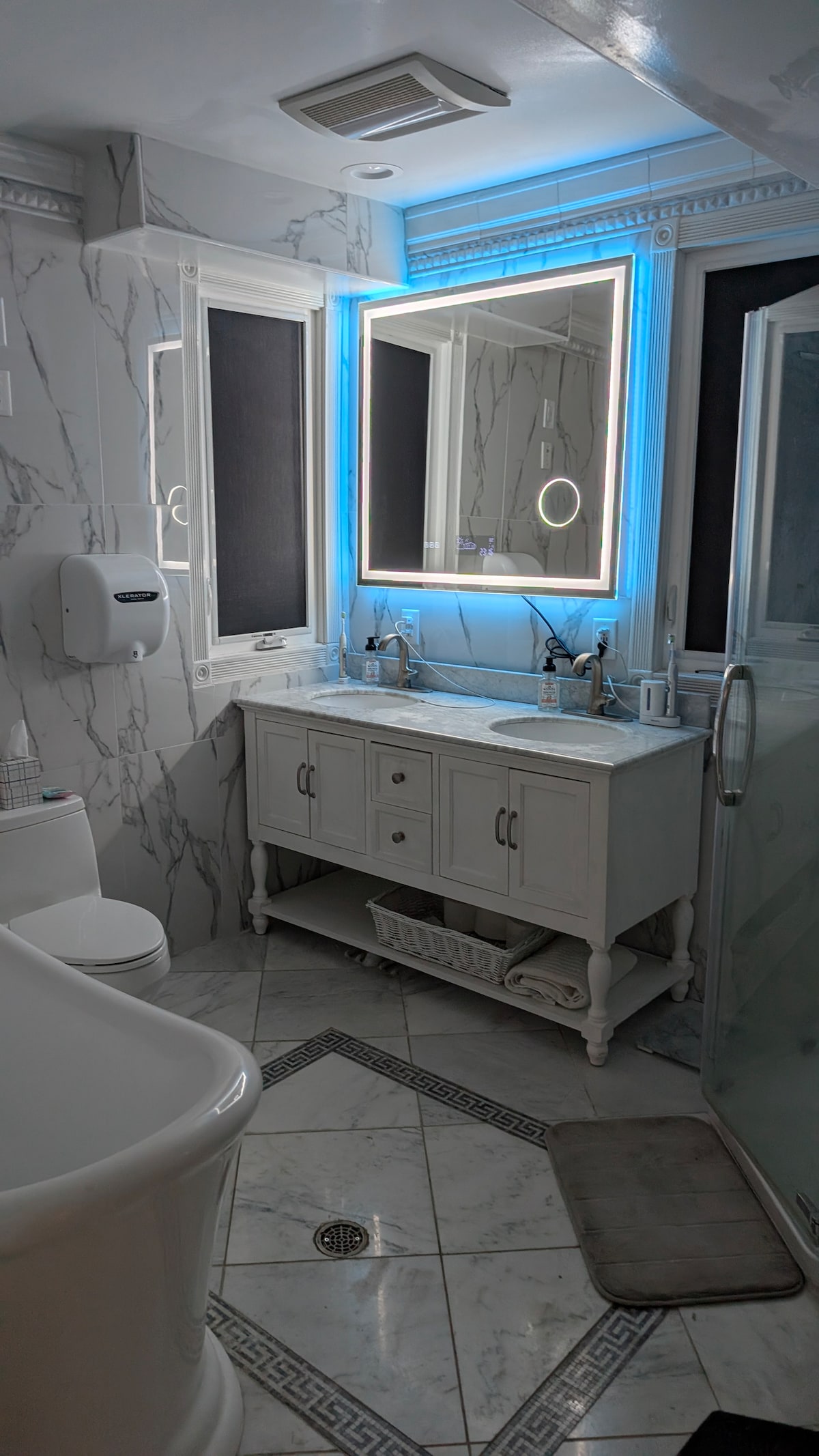 The entire upstairs is your private suite w/queen size bed, twin sofa bed, frig w/freezer, Keurig & flat screen TV w/Netflix, etc. Adjoining room w/bunk beds, closet & chest of drawers. Walk in closet can be used as nursery with Pack & Play provided. Newly remodeled bathroom w/jetted tub & shower on this floor. A 2nd full bath on main floor, kitchen, dining rm + patio w/grill shared w/me for your use.