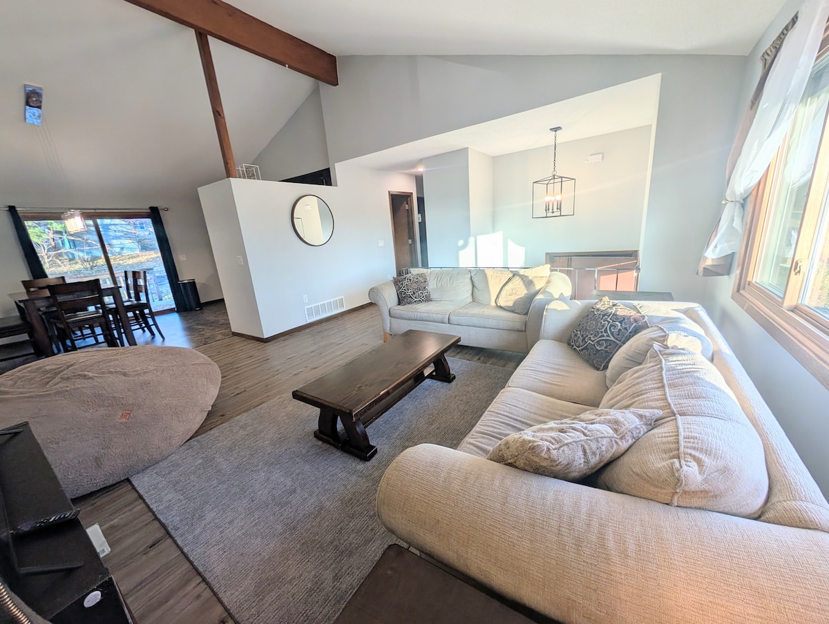 PERFECT location! 4 bedroom/3 bath split level home, great for a visit to the twin cities or surrounding suburbs. Each bedroom has either a queen or king sized bed. Comfortable beds, private back deck, books, games, fire pit, Wifi, washer/dryer, EV charging upon request, walking distance to parks/trails Attached garage, driveway, & street parking available (all free)