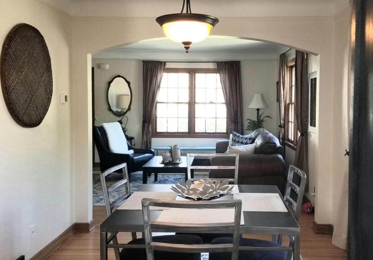Charming 3-bed, 1.5-bath flat that can accommodates 6 people. First floor apartment with minimal stairs. King bed for those wanting to sprawl out! Enjoy 2 queen beds, 1 sofa bed and 1 small futon. Located near Concordia University, Hamline Mitchell, St. Thomas & Macalester colleges. Explore vibrant shops, restaurants & cafes. Also, enjoy easy access to Xcel Energy Center for sports & concerts and a short jaunt to Minneapolis. Book now for an unforgettable stay!