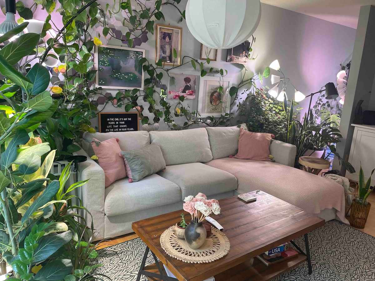 This 650 sq ft basement gem is tucked in a super walkable neighborhood. You’ll have your own entrance, ONE free parking spot out back. Above the suite is a private tattoo studio — you might hear a little light foot traffic during Monday to Friday (10 AM to 5 PM), but it’s delightfully quiet otherwise. Note for our taller friends: the ceilings are 6 feet 10 inches high, with a few cozy spots at 6 feet. (Dogs CAN NOT be left alone at Airbnb)