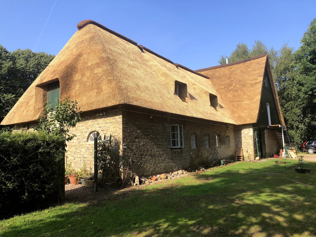 An der schmalsten Stelle Deutschlands gelegen, befindet sich dieses Kleinod, ein 180-Jahre altes, reetgedecktes Geestlanghaus, in ruhiger Alleinlage mit freien Parkmöglichkeiten, 10 Minuten von der A7 entfernt. Junge Paare mit Kleinkind, Alleinreisende, Touristen auf dem Weg in den Norden oder Süden, Abgeschiedenheit suchende Maler, Pianisten (Flügel vorhanden!), Schriftsteller und andere Kreative, Vogelfreunde und Liebhaber der Meere sind willkommen in unserer kleinen Galerie!