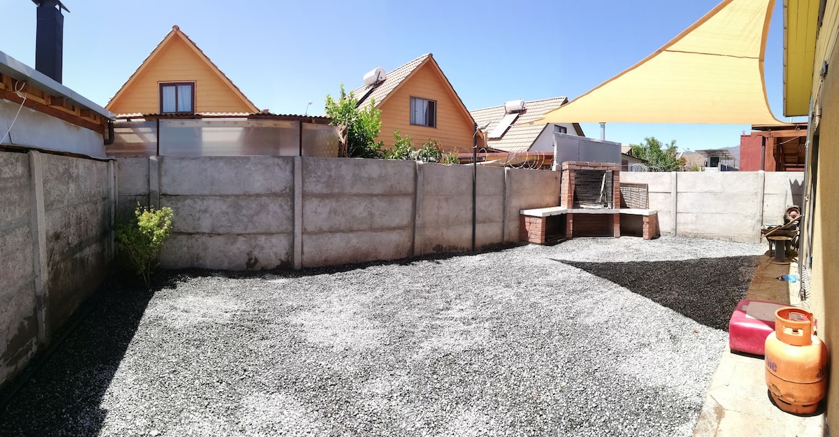 Diviértete con toda la familia en este alojamiento con estilo. Disfruta de un momento de total relajo, descanso y desconexión junto a tu familia. Nuestro espacio cuenta con: WiFi, Platos, Vasos y Utensilios de cocina. Refrigerador, Cocina, Hervidor, Horno. y una Parrilera para disfrutar en familia. Amplia zona de patio con Tinaja ideal para compartir. Excelente ubicación Centros Comerciales, Supermercados, Bancos, Restaurantes, Estación de servicio, Parques, Complejos Deportivos, Viñedos.