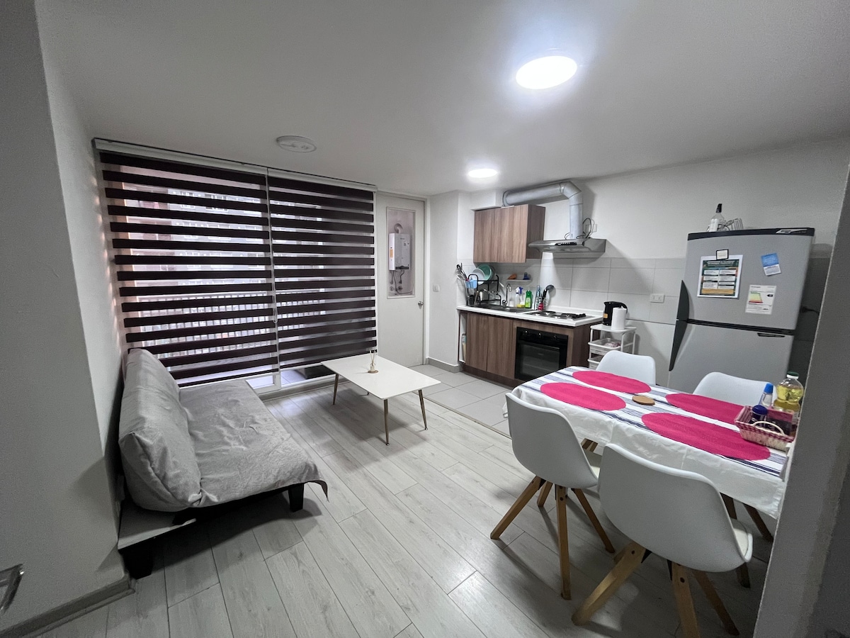Acogedor Estudio en el Corazón de Rancagua Este moderno estudio de un ambiente está diseñado para ofrecerte comodidad y funcionalidad. • Todo lo necesario para dos personas • Cocina completamente equipada • Espacio de descanso y entretenimiento • Baño bien equipado • Excelente ubicación: • A solo 5 minutos del Terminal O’Higgins. • A 6 minutos del terminal de trenes. • A 4 minutos caminando de la Universidad O’Higgins. • Con fácil acceso a transporte público desde calle
