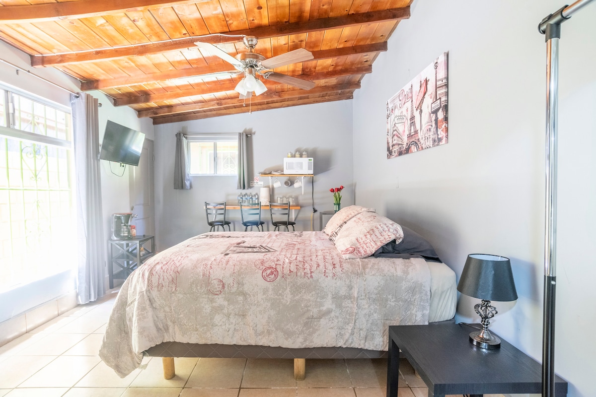 Welcome to our luxury and comfortable studio, designed to provide 5-star experiences for couples. With a King size bed, rain waterfall shower with perfect pressure and temperature, high-speed Wi-Fi, complementary coffee service, sofa-bed for kids, premium finishes and rotating TV, this studio is better than any hotel room or suite. This is a new unit that was finished in October of 2023, with everything out-of-the-box brand new. The stay includes private gated parking. Located at Casas Sanblu.