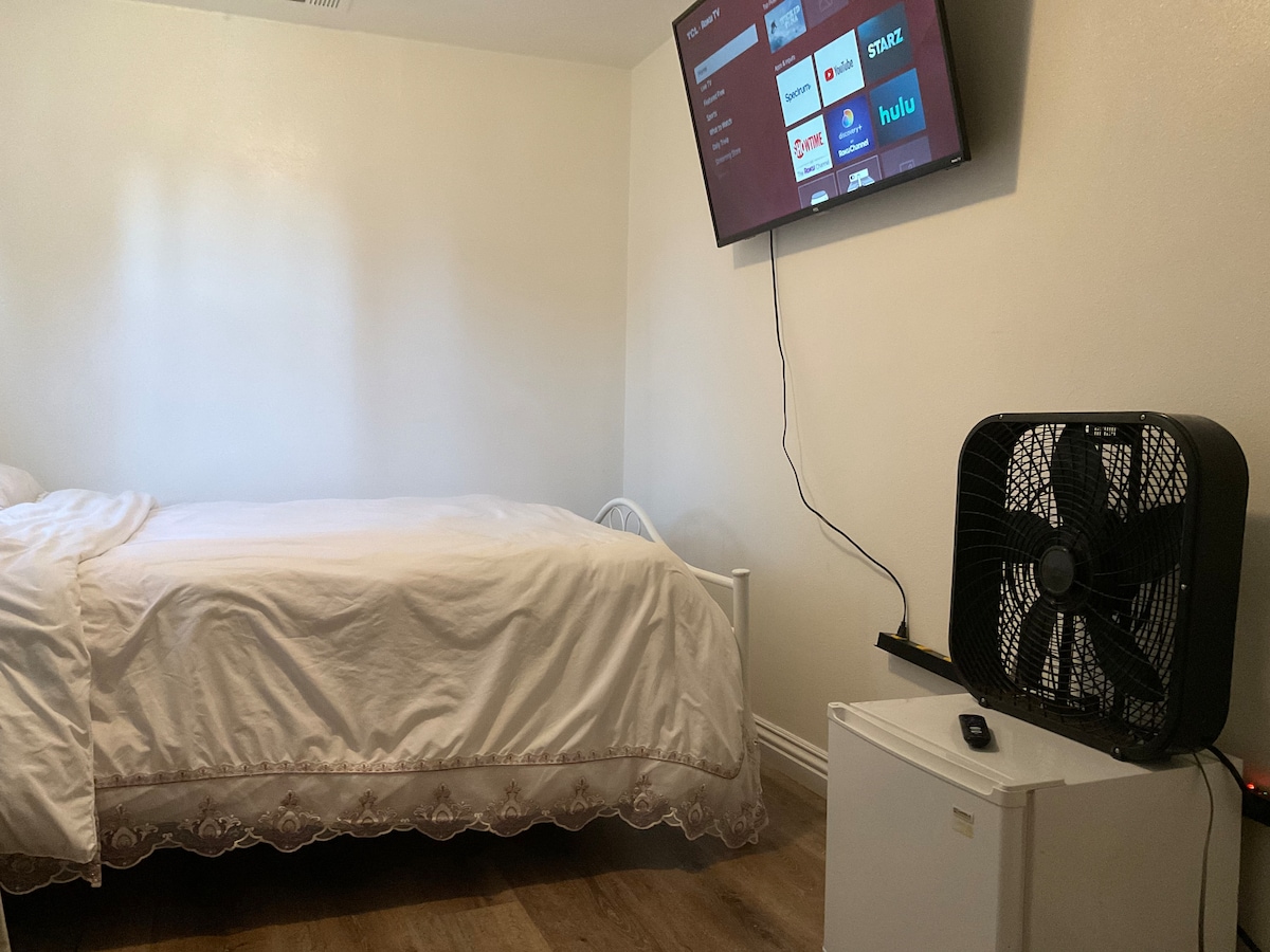 Quiet private room B/Qbed/TV/shared bath/sanitized