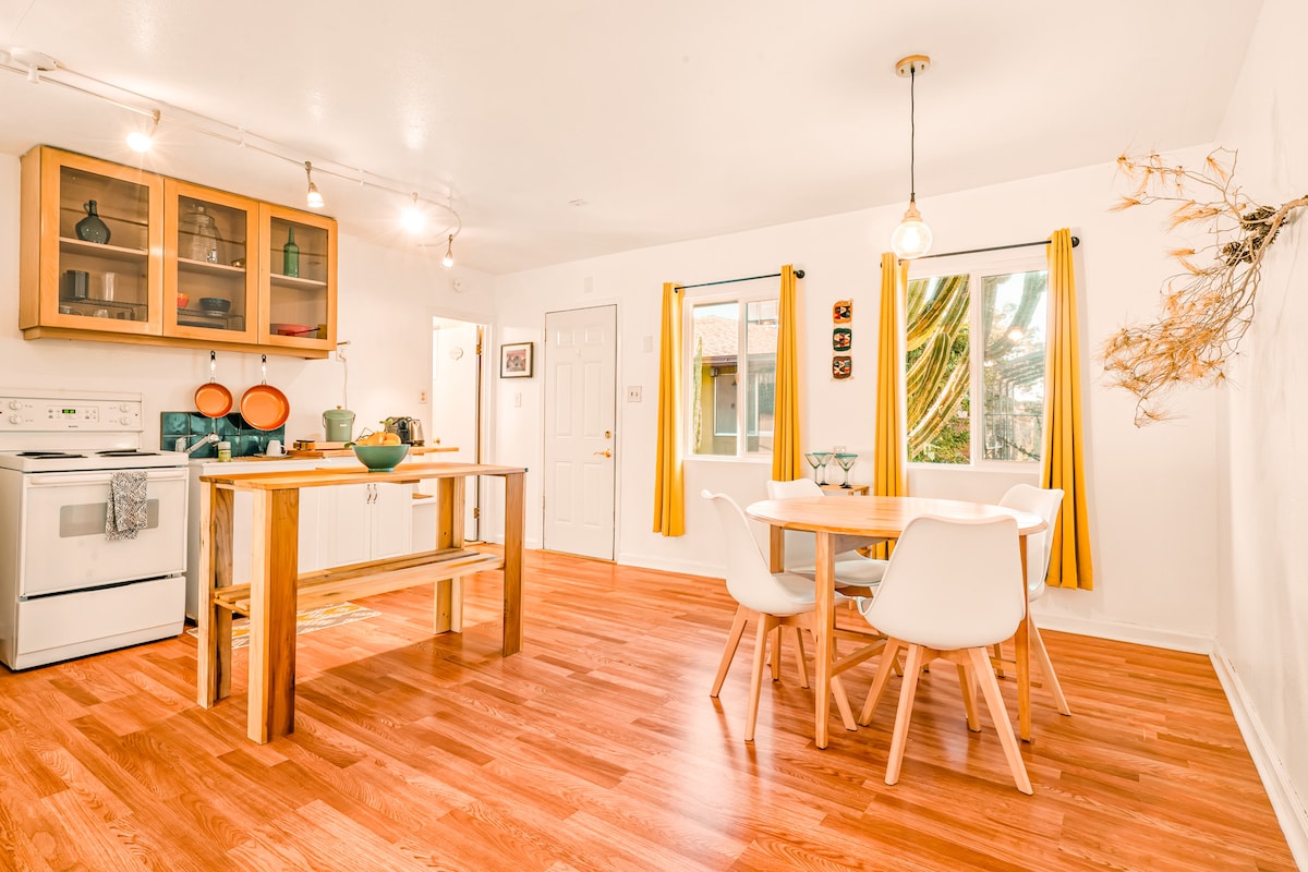 Enjoy a stylish experience at our centrally located Retro Casita (pool house) with its own private entrance, direct access to pool and massaging spa. Close to all necessities: Albertsons, Sprouts, Trager Joe’s, gas station, dry cleaners, hair & nail salons, restaurants, shops. Minutes away from upscale shopping, art galleries, restaurants & nightlife on El Paseo, McCallum Theater, Tennis Gardens, Acrisure Arena, Golf Resorts, Casinos, The Living Desert Zoo, *Coachella & Stagecoach Shuttle*