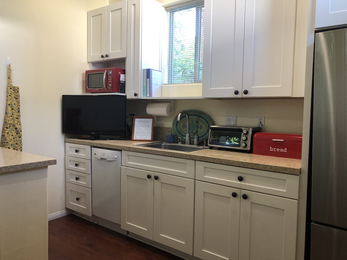 Beautiful, upscale casita w/private entrance located in a quiet neighborhood. Keurig with complimentary pods, wifi, Smart TV, cable, movie channels, and private central air included. Completely remodeled front patio area with fire pit and bar height dinning table just added! Enjoy a glass of wine and unwind on the front patio watching the sun set over the mountain next to the fire pit. We are pet friendly. Pet fee of $30; pay when you stay.
