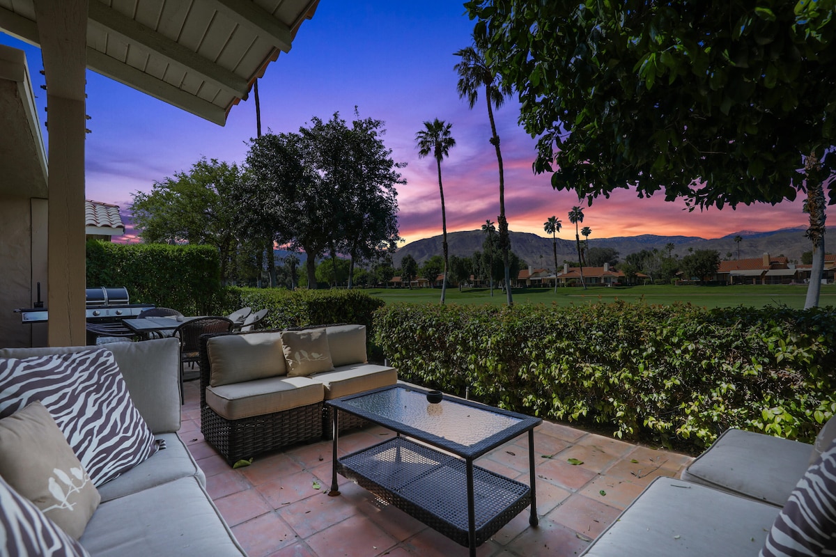 Relax and unwind at this peaceful and centrally-located fully stocked Condo located in the Palm Desert Resort Country Club; a 24 hour security gated community. Single level unit in the "Resorter, AKA." World class pickball and tennis courts. On the 10th fairway of the golf course! Amazing views of the sunset, mountains, golf course and clubhouse. 20 swimming pools and spas on property. Our guests have access to all amenities including Golf, Tennis, Pickleball, Clubhouse and restaurants.