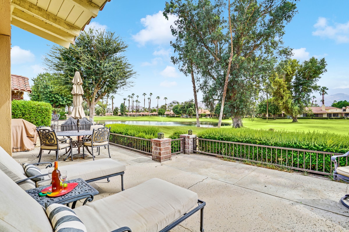 Relax in this serene retreat on your escape to Palm Desert! - Stunning 180° mountain scapes, lakes & sunset views from every room - Spacious outdoor patio & balcony for lounging & entertaining - Newly renovated ensuite spa baths in master & guest bedrooms + powder room - 40+ pools; 2 nearby just to the right & left of the patio - Fully outfitted kitchen w/new appliances - Private nooks w/free Wi-Fi; smart TVs in every room Message or book today!