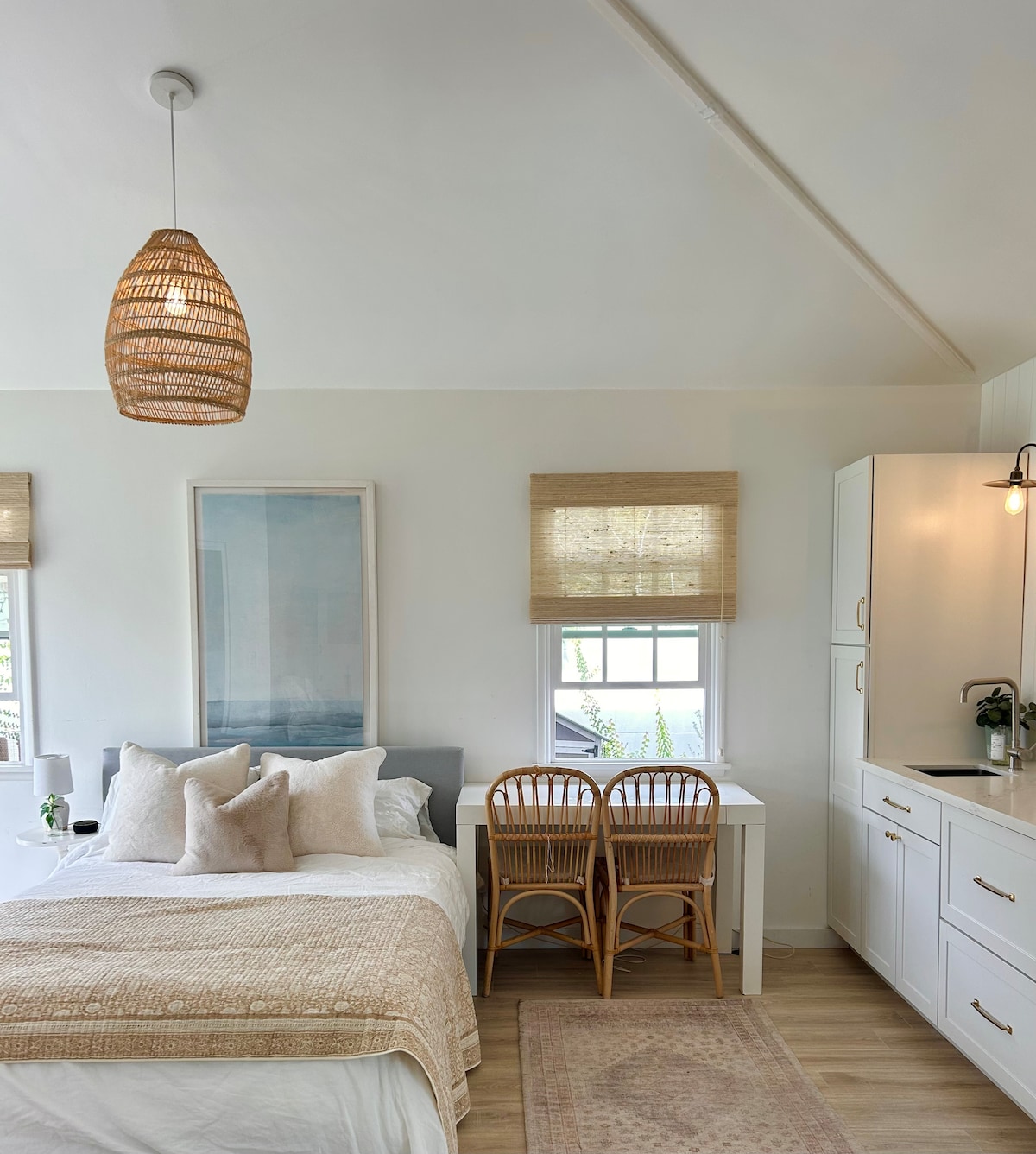 距离海滩一个街区,配备加大双人床和全功能厨房