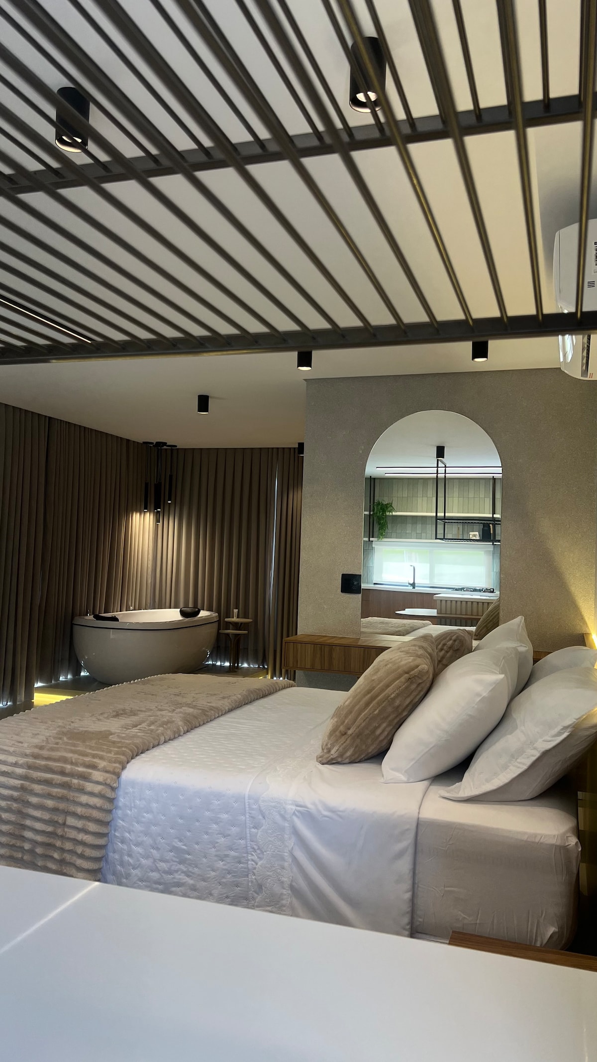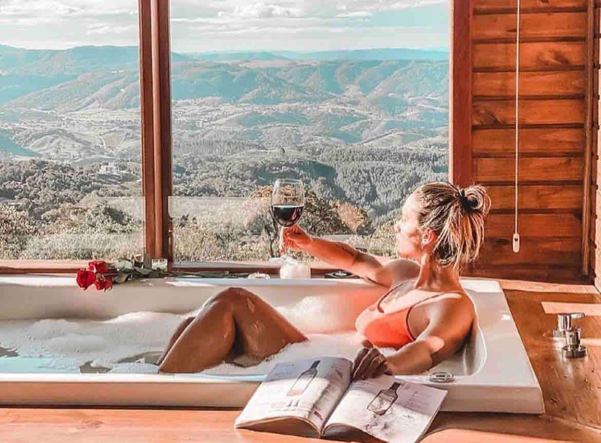 Encontre um espaço romântico neste refúgio, rodeado pela natureza e com vista para o vale. O espaço é super aconchegante, privativo, unindo o rústico ao moderno. Destaques: Banheira de hidromassagem. Lareira aconchegante. Smart TV e ar-condicionado. Deck com churrasqueira. Fogo de chão. Desfrute da experiência inesquecível do nascer do sol na cama.
