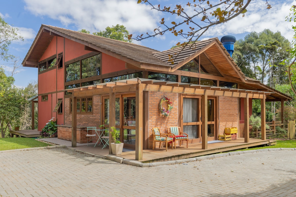 Relax in this modern and sophisticated home in the Serra Catarinense! Located in a secure condominium, it offers spacious, cozy, and integrated areas with a 360º view of nature. Living room with a 75” TV, lounge with a fireplace, gourmet kitchen with an island and a 10-seat dining table, wood stove, and barbecue. On the terrace, a breathtaking view for unforgettable moments. Fully equipped for a five-star experience! Book now and live this unique stay!