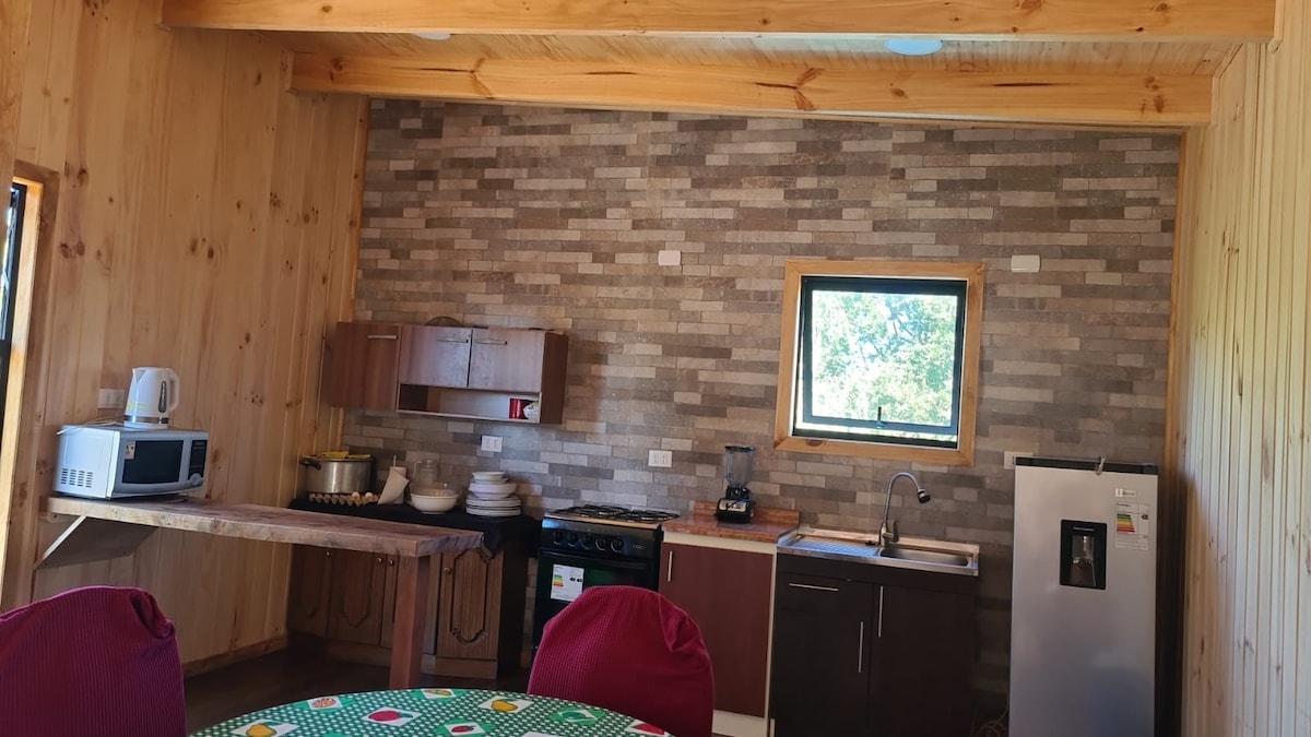 Acogedora Tiny house en medio de bosque nativo de hualles y arrayanes. Cercana a atractivos turísticos como el Salto del Nilahue, Playa el Arenal, Playa Epulafquen, Riñinahue y Calcurrupe.