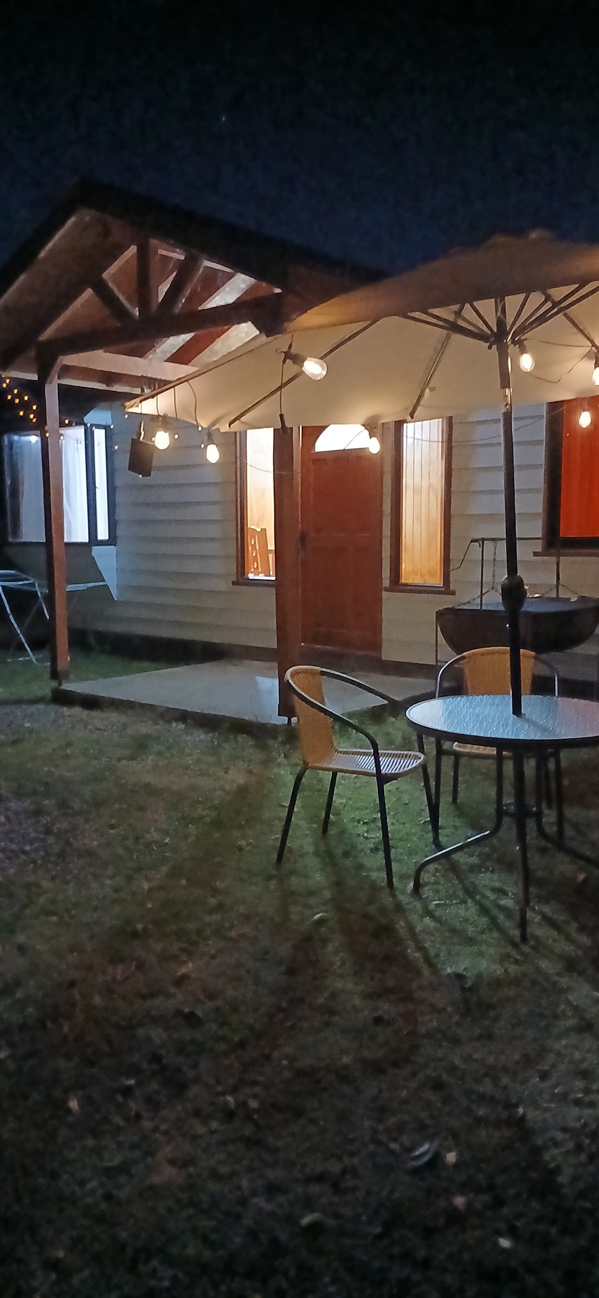 hermosa cabaña ubicada a la orilla del río, con bajada incluida donde podrán relajarse escuchando el sonido del agua, ademas mencionar que la cabaña esta completamente nueva y full equipada