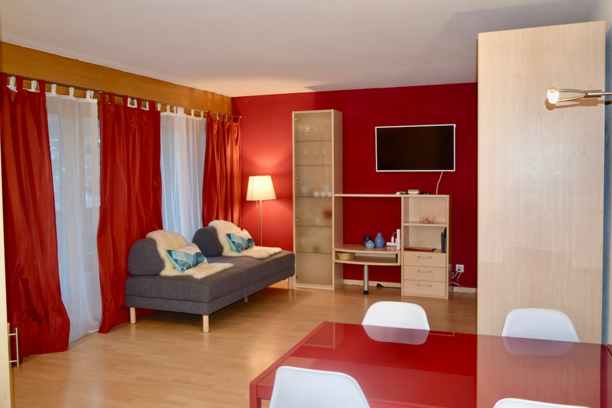 The studio is located in the center - 3 minutes walking distance from the train station and, from the Gornergrat station. It is spacious and bright with a nice relaxing view. It is fully equipped and perfect for 2 people. The little balcony has two comfy armchairs. There is the possibility for a third guest on the bed-sofa. It is located on the 5th floor with elevator.