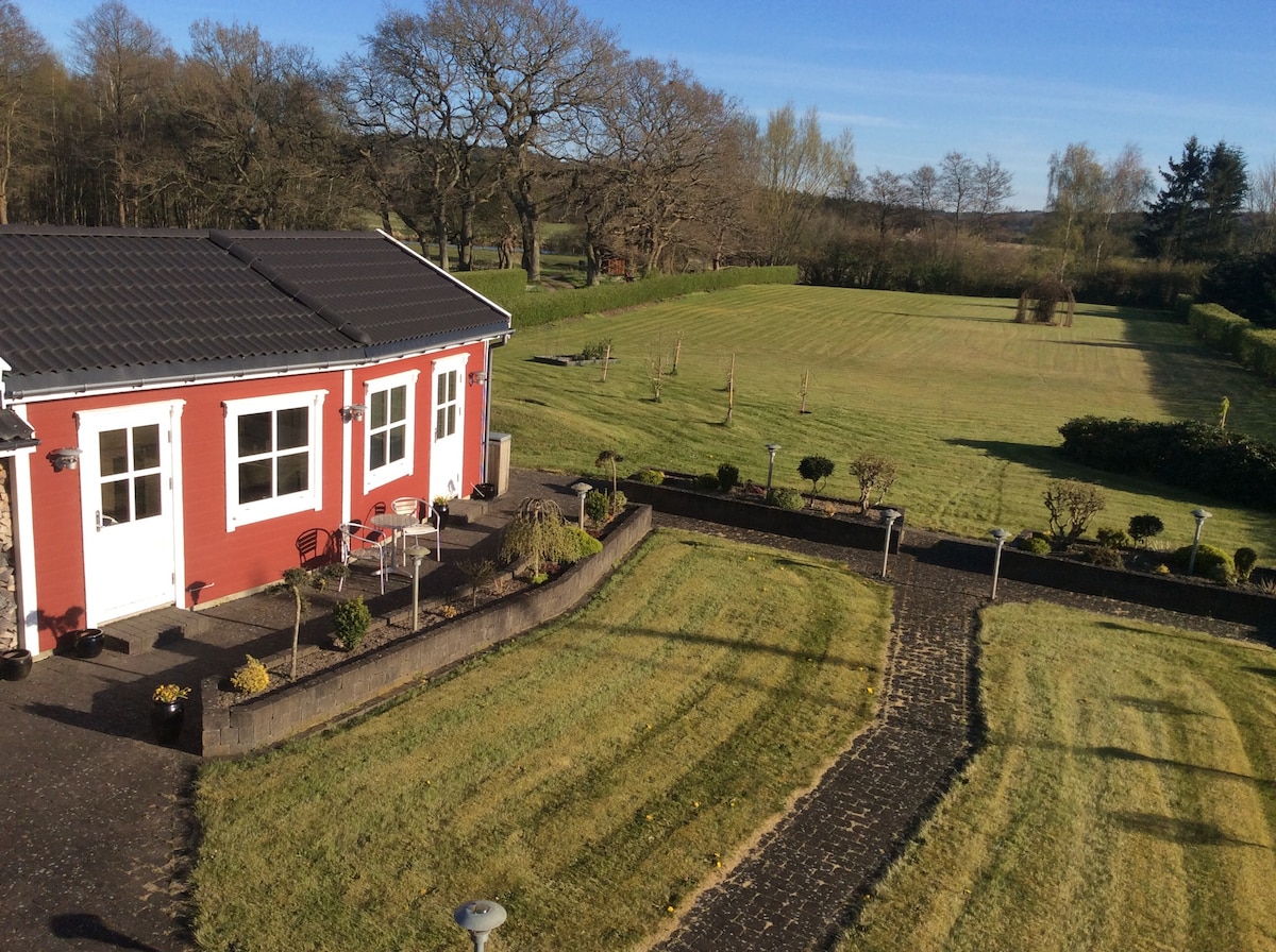 Gæstehus på landet med skøn udsigt- 8kantet hus