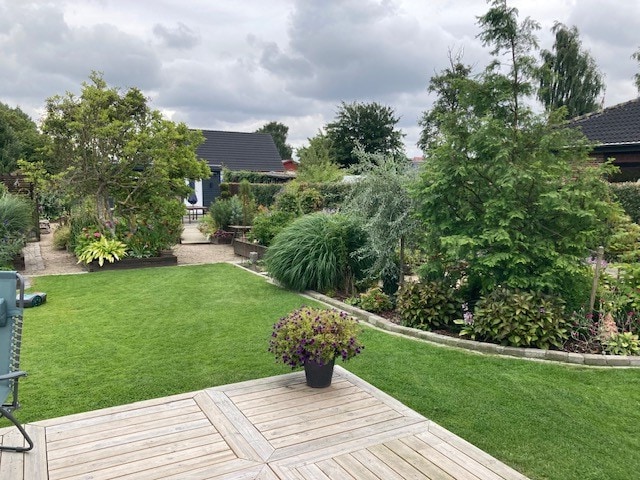 My beautiful house is 83 m2 with 2 bedrooms, one with a double bed and one with a pull-out bed. A bed can be made for a 5th person. There is a baby chair, games and toys for children. A lovely kitchen-dining room with access to an old but cozy garden room, from which you can enjoy the beautiful garden. It takes approx. 15 minutes to walk into the center of Randers. If you drive into Randers, it is cheap to park next to the bus station = DKK 7/hour.