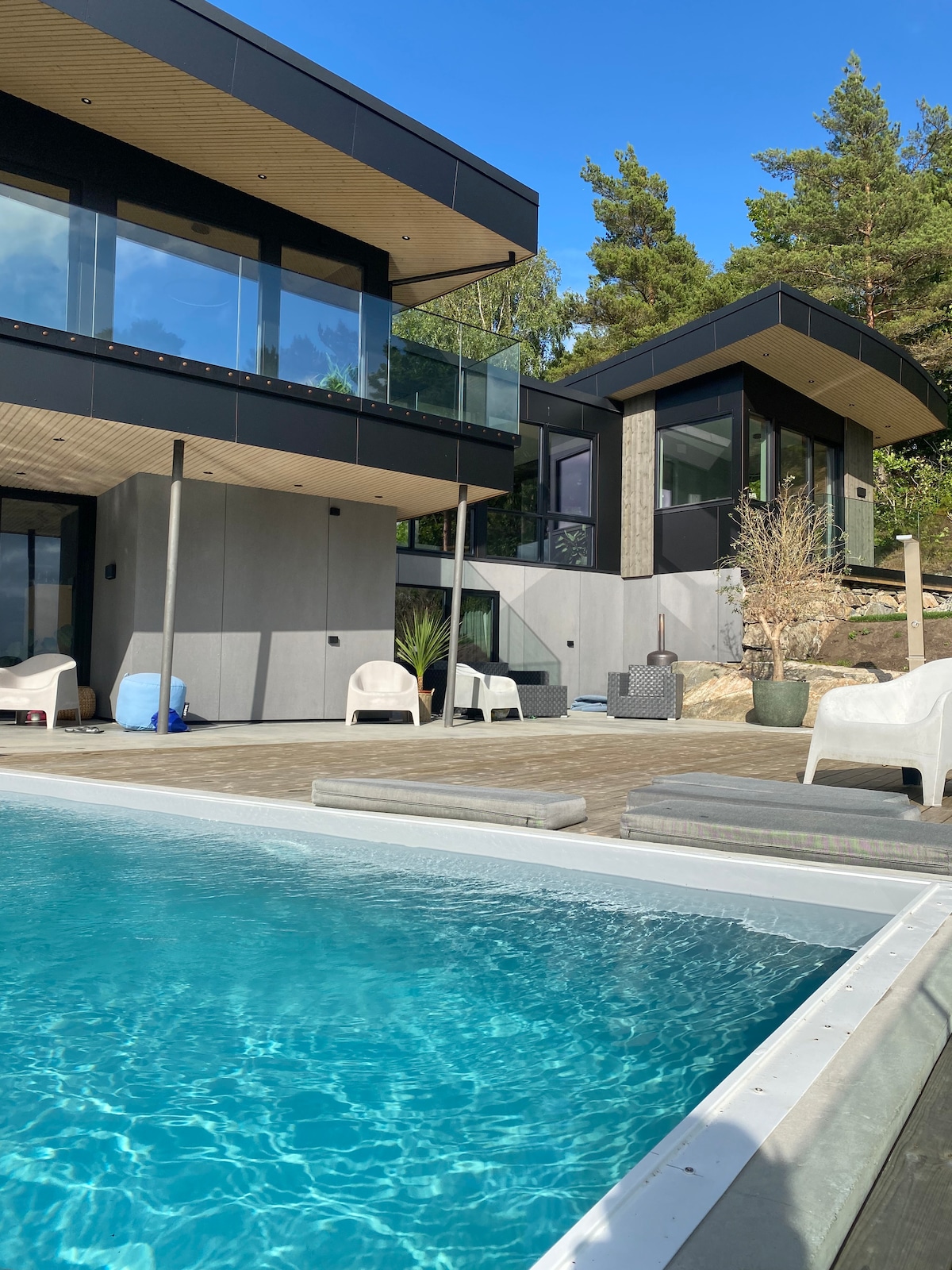 Unik arkitekttegnet villa med utendørs basseng, 3 kjøkken, 4 bad, 3-4 stuer og gjennomgående moderne og varme designvalg. Topputstyrte kjøkken og bad. Her finner du roen, men har sykkelavstand til Kristiansand sentrum og Dyreparken. Plass til opptil 16 gjester! Parkering på tomten og flotte utearealer. Nærme til skog og sjø, og velforeningen har brygge på 4minutters gåavstand. Platting/uteområde rundt basseng ferdigstilles senvår/sommer 2025.
