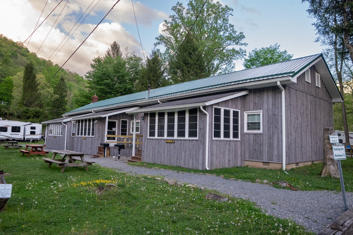 What used to be a 1950's schoolhouse is now a beautifully-NEWLY renovated cabin in Revelle's River Resort... 2 Bedrooms, Full Bath, Full Kitchen. Queen Sleeper in LR. All 3 Rainbows do share 1 Hot Tub. Just steps away from the Shaver's Fork River, guests have access to some of the area's greatest trout fishing. Bring the children and join in on our scheduled activities. PETS ARE WELCOME FOR A FEE BUT MUST BE APPROVED AT TIME OF BOOKING. NO EXCEPTIONS.