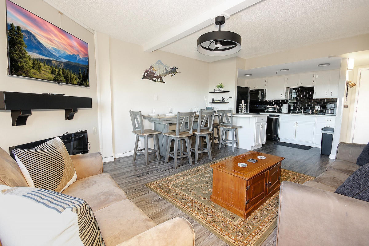 - Private Underground Parking - EV Charging Station is Across the Street - Valet Service (Winter) - Communal Sauna, Fitness Room and Hot Tubs - Large, Beautiful Hearth Room - Next to Soaring Eagle High-Speed Chair-lift - On the Free Shuttle Route - 10 Prime Steakhouse Onsite (seasonal) - Two (2) Rental Shops Nearby - Hoots Bar and Grill Next Door - Beautiful Mountain Views - Gas Fireplace - Drip and K-Cup Coffee - Crockpot - Washer/Dryer In Unit - Hairdryer