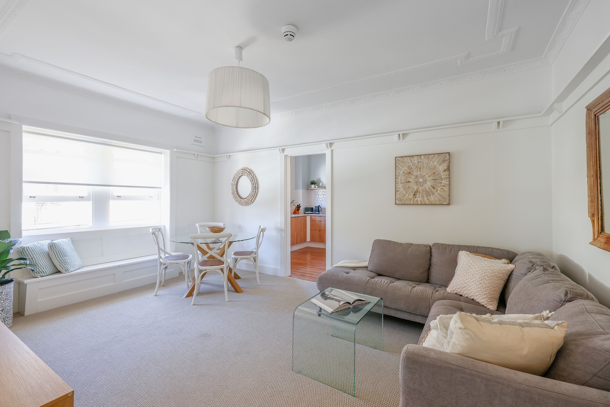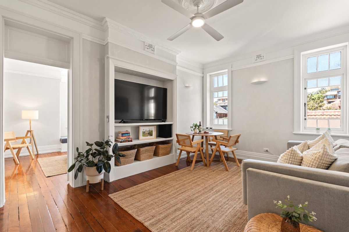 Escape to our stylish 2-bedroom waterfront retreat in Sydney's Tamarama We are pet friendly! Nestled between Bondi & Bronte beaches. Perfect for families friends, this bright, airy apartment offers stunning ocean views from a spacious sunroom. Enjoy a fully equipped kitchen, fast Wi-Fi, Smart TV, and easy access to the famous Bondi to Coogee coastal walk. Comfortably sleeps 4-5 guests. Your ultimate beachside getaway awaits!