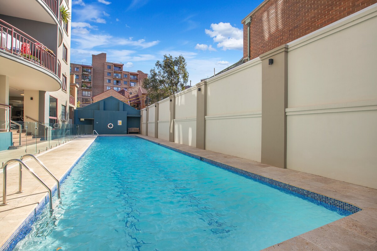 温馨Zetland双卧室公寓,带泳池健身房停车场