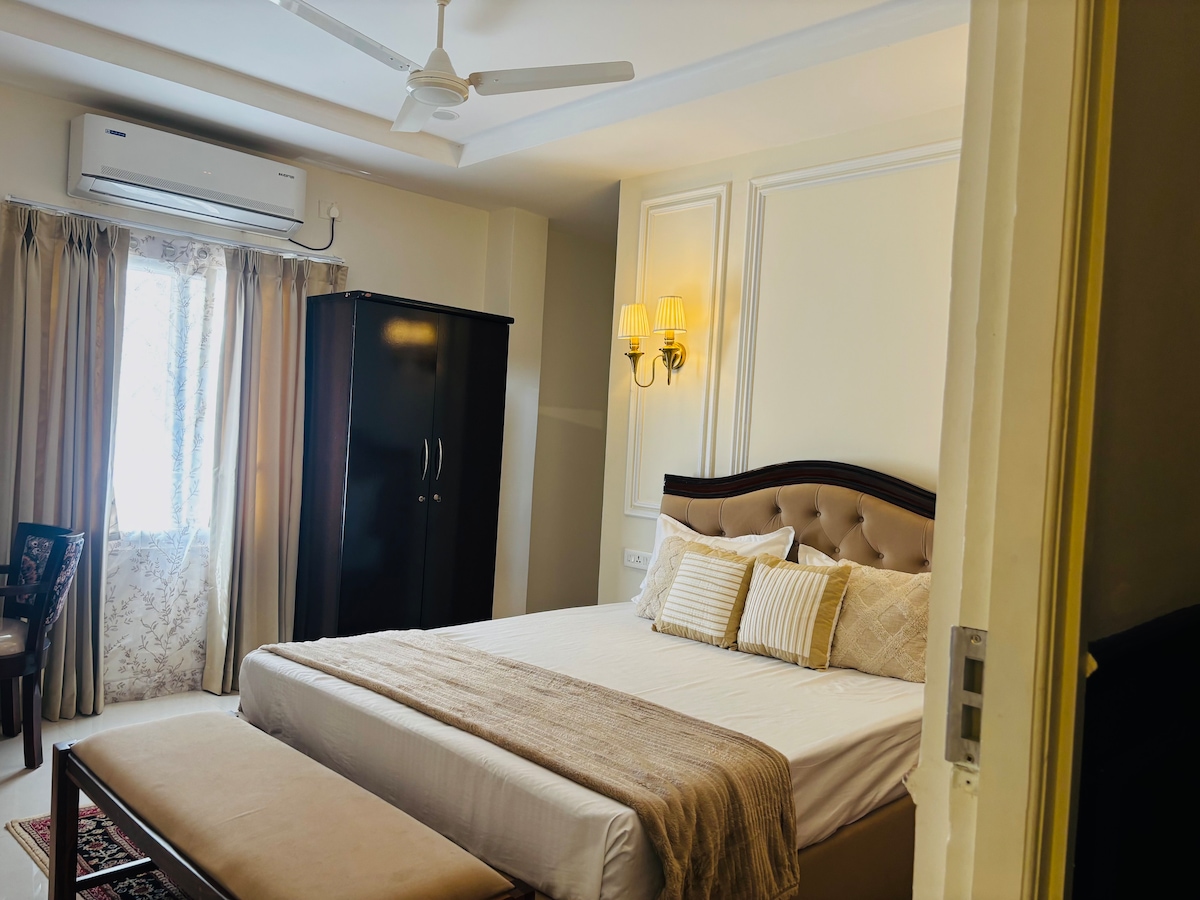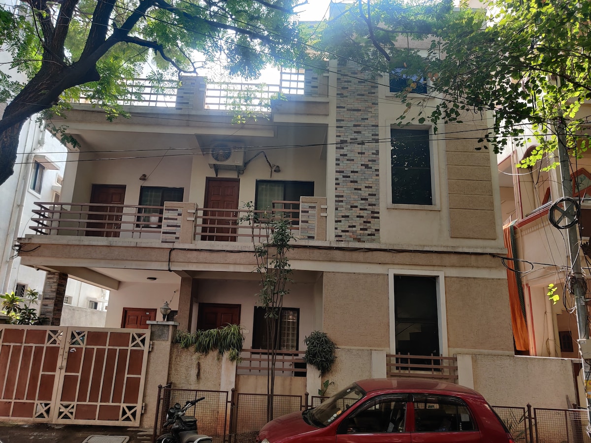 This cozy 2BHK penthouse on the 4th floor offers a peaceful stay with lift access and CCTV surveillance for security. Enjoy the open front area for fresh air and sunlight, while kids can play in the nearby park. Supermarkets and shops are within walking distance. The apartment features AC in both bedrooms, geysers in the bathrooms, high-speed Wi-Fi, and a fully equipped kitchen. A washing machine and iron are also provided, making it perfect for a comfortable and convenient stay.
