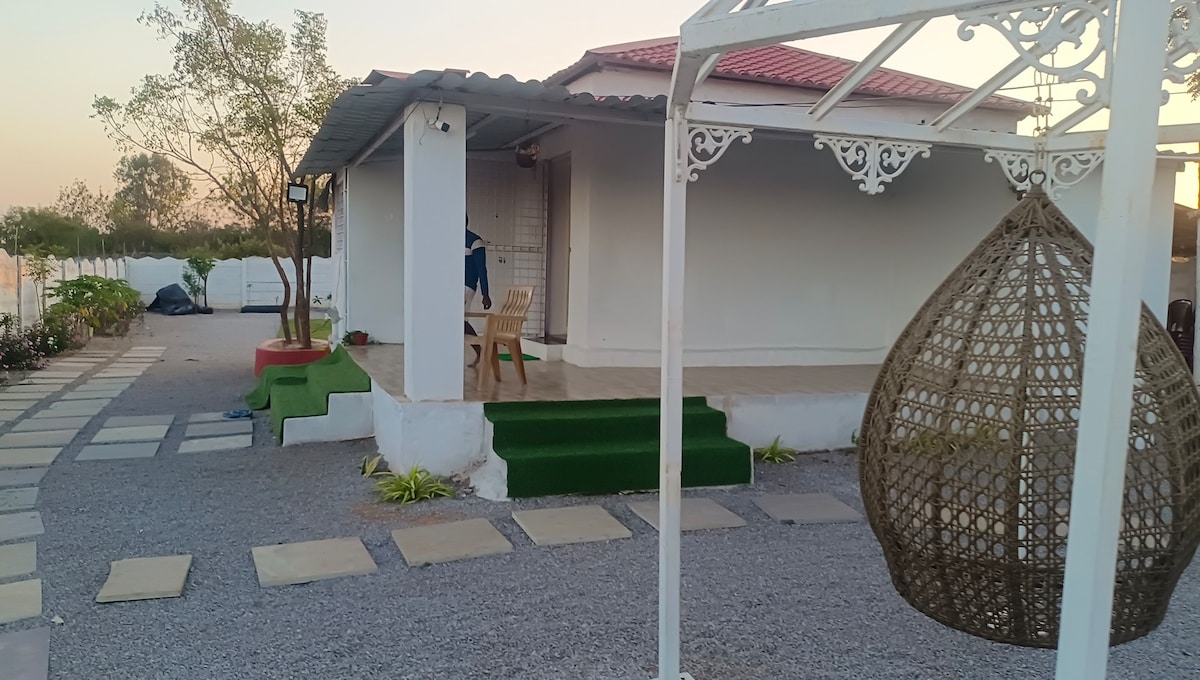Relax with the whole family at this peaceful place to stay. with good ambiance, nature friendly, pollution free environment, complimentary wifi, pool facility, outer gaming zone, firepit, kids play area, small garden and party area, 4 luxurious bed rooms with attached bathroom, TV and outdoor gaming zone.
