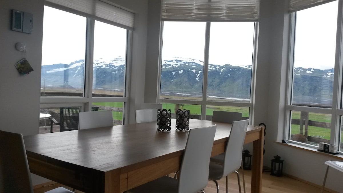 Unique experience for people looking to travel around Iceland or for those who prefer just to stay in and enjoy the rural countryside. With a beautiful 360° scenery and a grand pateo you can enjoy mesmerizing sunsets and spectacular northern lights showings, given the complete lack of light pollution. It's the photohgrapher's dream location. Eyjafjallajökull and Seljalandsfoss can be seen from the apartment. 4x4 is necessary during winter as the path leading to the house can get very snowy.