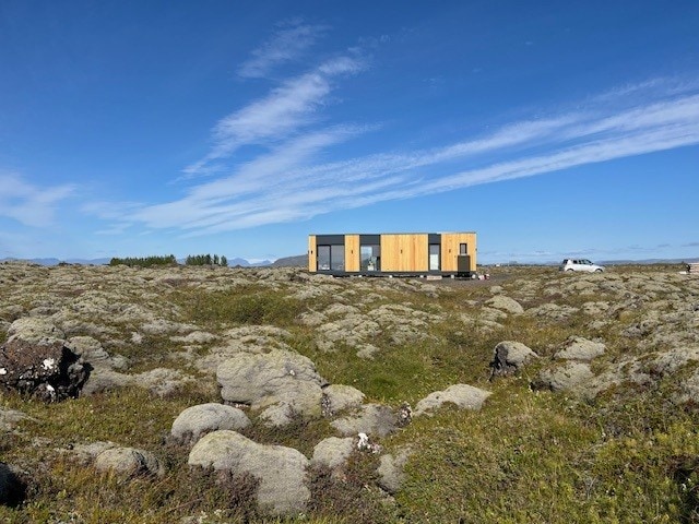 Charming tiny house in a peaceful, secluded location between Hella and Hvolsvöllur, just 8 min from highway No. 1. Perfect for relaxing and unwinding. The large panoramic front window lets you enjoy nature right from the bed: stunning sunrises, Northern Lights and views of the river, mountains and volcano Hekla. The house has a modern and well-equipped kitchen and a comfortable bathroom. !!Starting mid-June, a brand-new Jacuzzi with massage function and lighting will offer even more comfort!!