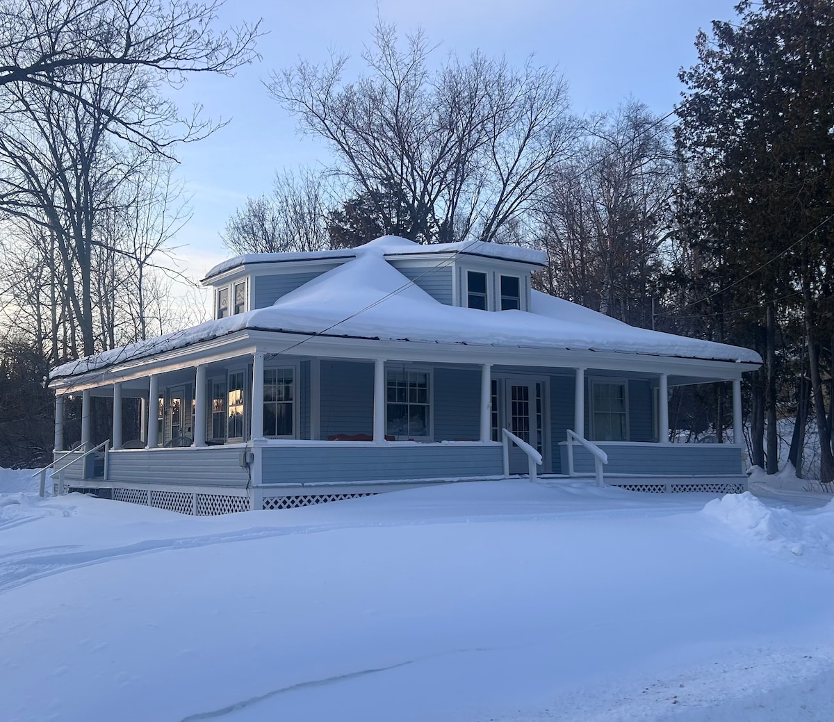 Our GETAWAY-perfect place for relaxing and fun! It’s private but 1/2 mile to IGA and approx 1 mi to beautiful downtown Rangeley with great restaurants, bowling, arcade, darts and shuffleboard. Ltd access to snowmobile trails directly from the house. ATV is no longer allowed from our home. Trails can be accessed from IGA (park across the st., or Depot Rd (includes trailer parking) 3/4 mile from our home. Hiking and incredible scenery! Walking distance to Pickford Pub and mins o Mtn Star Estate.