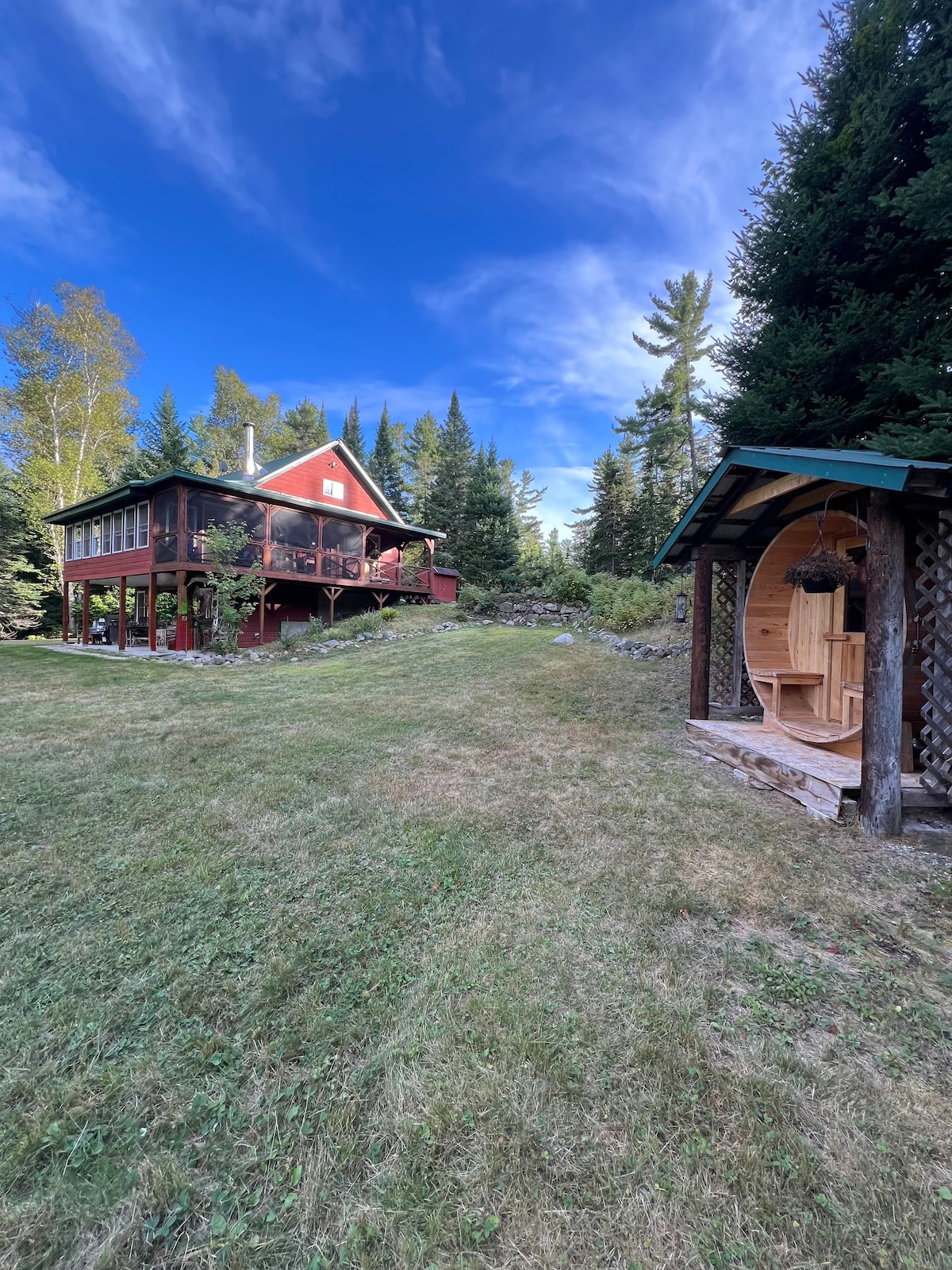 Wake up every morning and enjoy the breathtaking views of Rangeley Lake cozied up by the fire or outside on the wrap around deck. 5 min walk to Rangeley Lake, 2 min walk to Mingo Spring golf course, 5 min drive to downtown Rangeley, 15 min to Saddleback and 30min to Sugarloaf. Enjoy the shared lake access, take the kayaks out for a paddle on the lake play a round of golf. In the winter take to nearby trails in your snowmobiles and ice fishing on the lake. There's something for all 4 seasons!