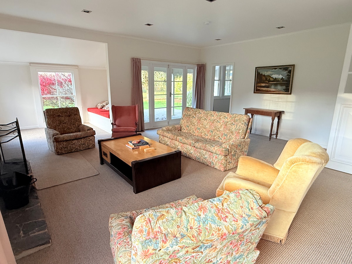Come back in time with us. Just 24km from State Highway 1 you enter the hidden world of Rangiwahia. Rangiwahia is quiet, ideal for downtime or a good nights sleep whilst travelling. Enjoy relaxing on a sun soaked back porch with birds swooping by, or cuddle up by the fire when it's chilly. 3 neighbouring Native Reserves give a range of Bush walks. It's a great base for local activities. Clear creek to cool down in or great swimming holes only a short drive. We are on the NZ Cycle trail.