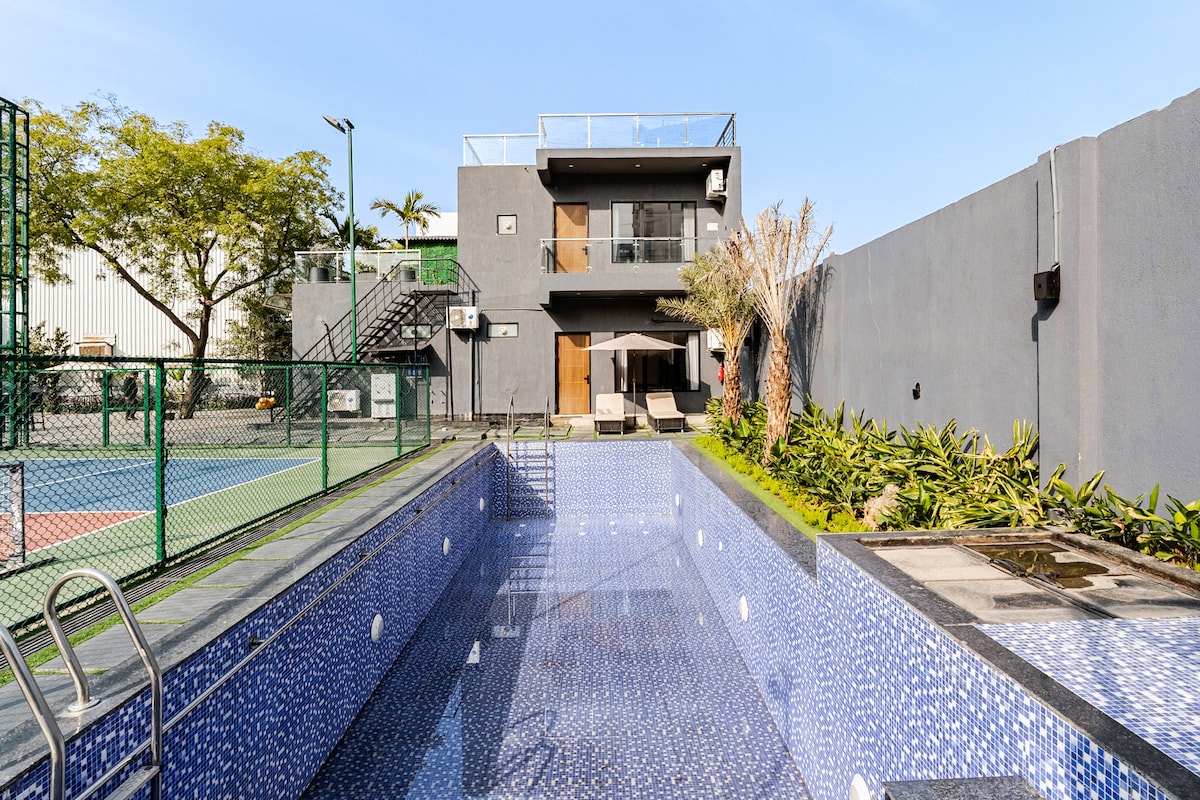 Nestled in the heart of Gurugram , a private luxury escape where expansive spaces , curated comfort & elevated living come together. Whether a weekend getaway, a celebration with friends or a stylish workcation, every corner of the property is crafted to impress. Transform the living room into private cinema experience, the professional pool table adds a recreational touch & the private indoor plunge pool is your personal sanctuary. This is just not a stay but an experience with aesthetic blends